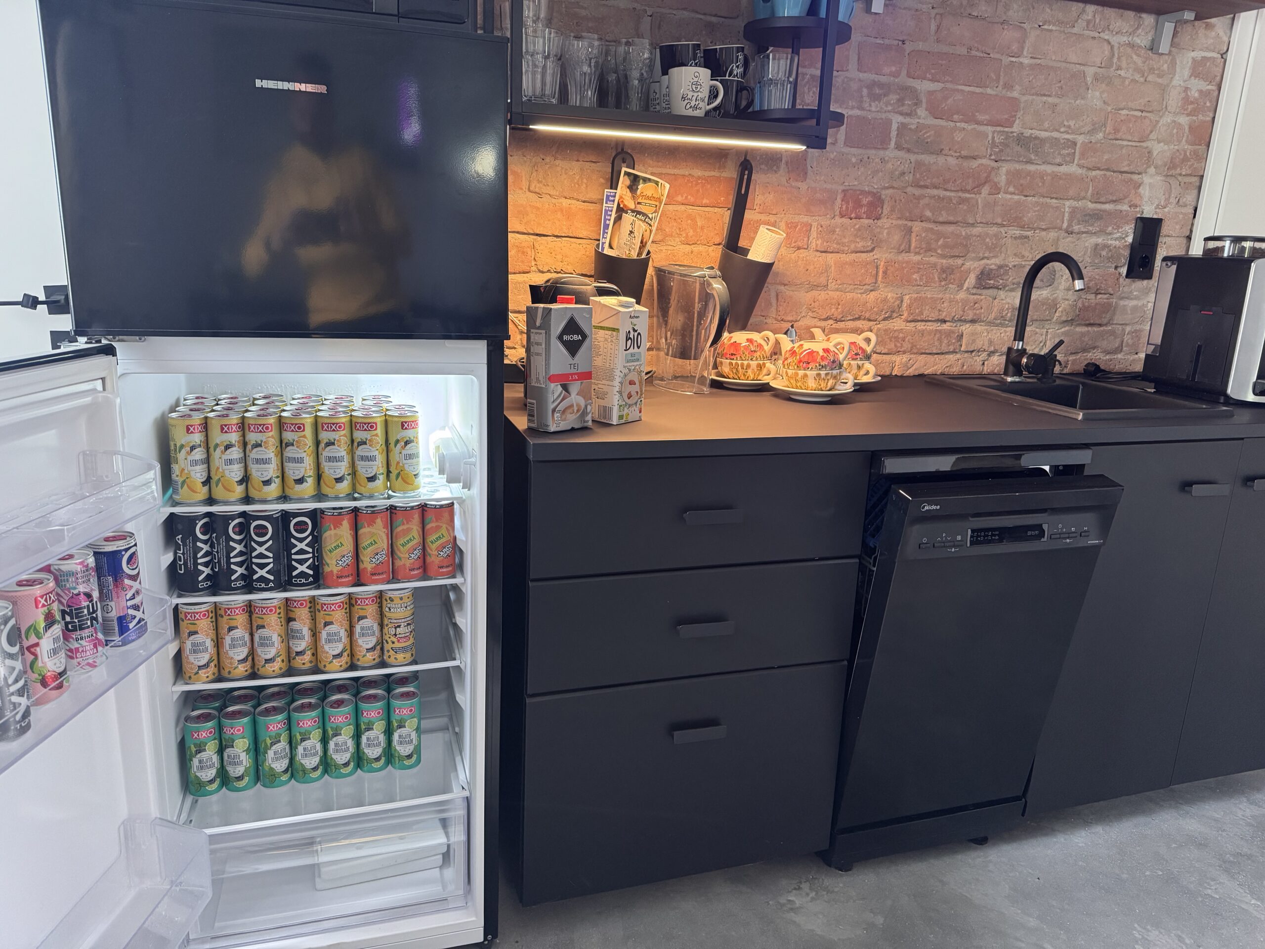 A bérlés részeként ingyenes kávé és tea, konyhahasználat áll rendelkezésetekre, így kényelmesen tarthattok szünetet, rendelhettek ebédet vagy vacsorát, amit nyugodtan elfogyaszthattok a teakonyhában.